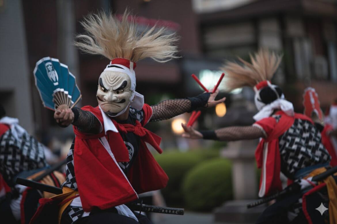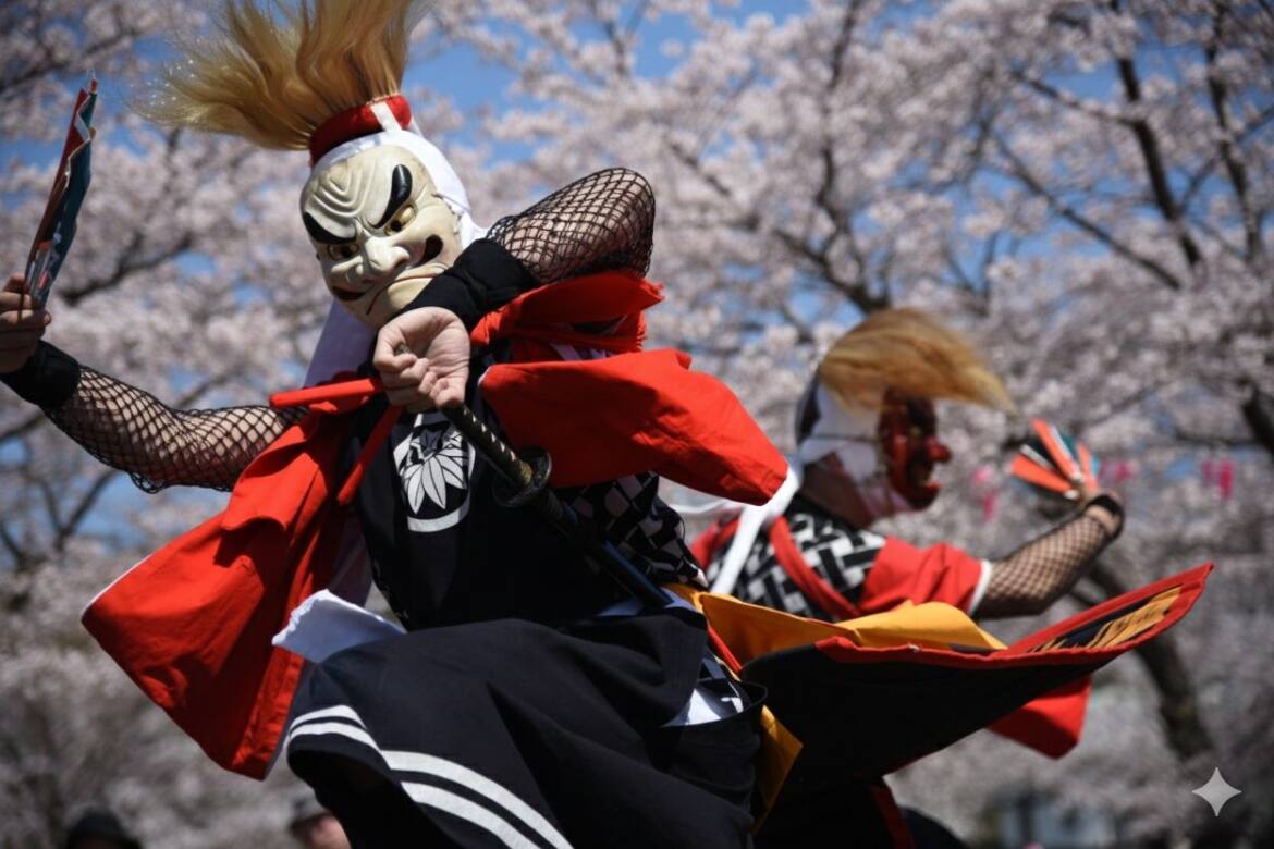 The name “Oni Kenbai” literally means “demons dancing with swords,” but the repertoire also includes dances using fans, bare hands, and even acrobatic movements. Some dances are performed solo, others by two, three, or even eight dancers, totaling 18 different numbers. There are also performances where the dancers do not move but stand in formation and recite Buddhist prayers.