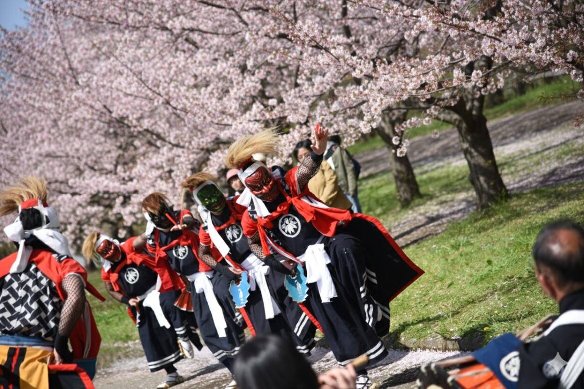 What began as a ritual dance by ascetic monks to ward off evil spirits and save all beings was later carried on by farmers as a prayer for family well-being and good harvests. The Oni Kenbai masks represent the incarnations of Amida Buddha, guiding all people to the Pure Land. It is a powerful, elegant, and dynamic performance that reflects the vigor of life in our harsh snowy region.