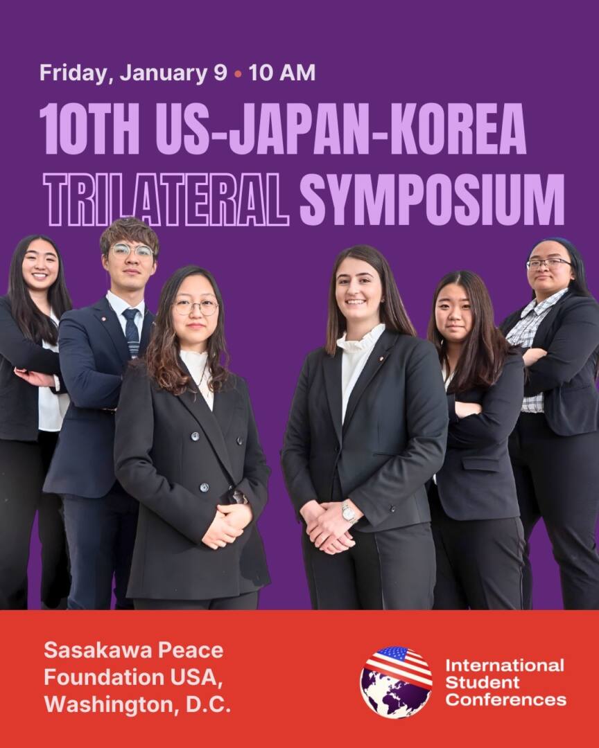 The 10th US-Japan-Korea Trilateral Symposium will take place on January 9th, 2026, from 10 AM to 2 PM in Washington, DC, at the Sasakawa Peace Foundation USA in DC, 1819 L St NW, Washington, DC 20036.